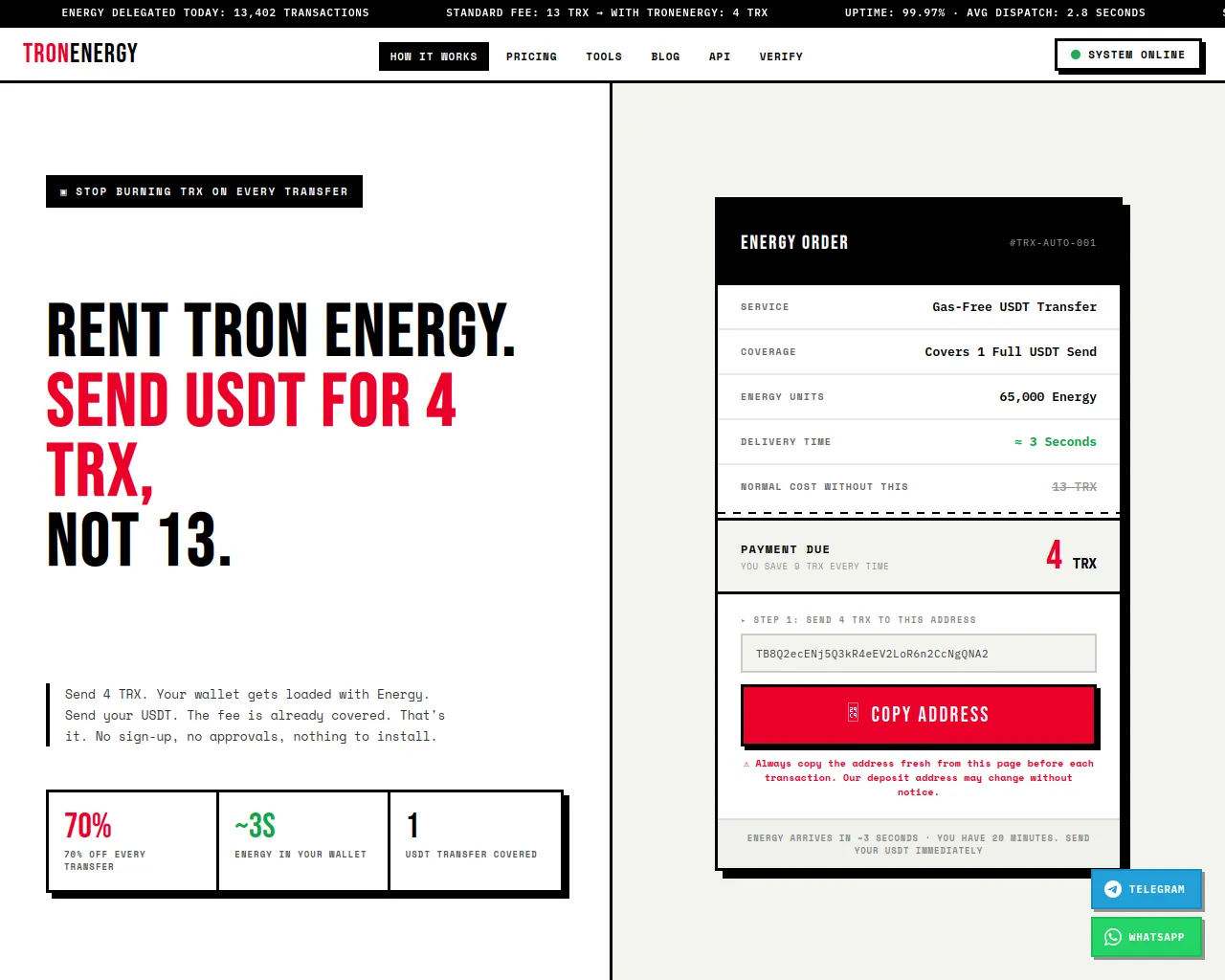 Rent Tron Energy: Send USDT for 4 TRX Instead of 13