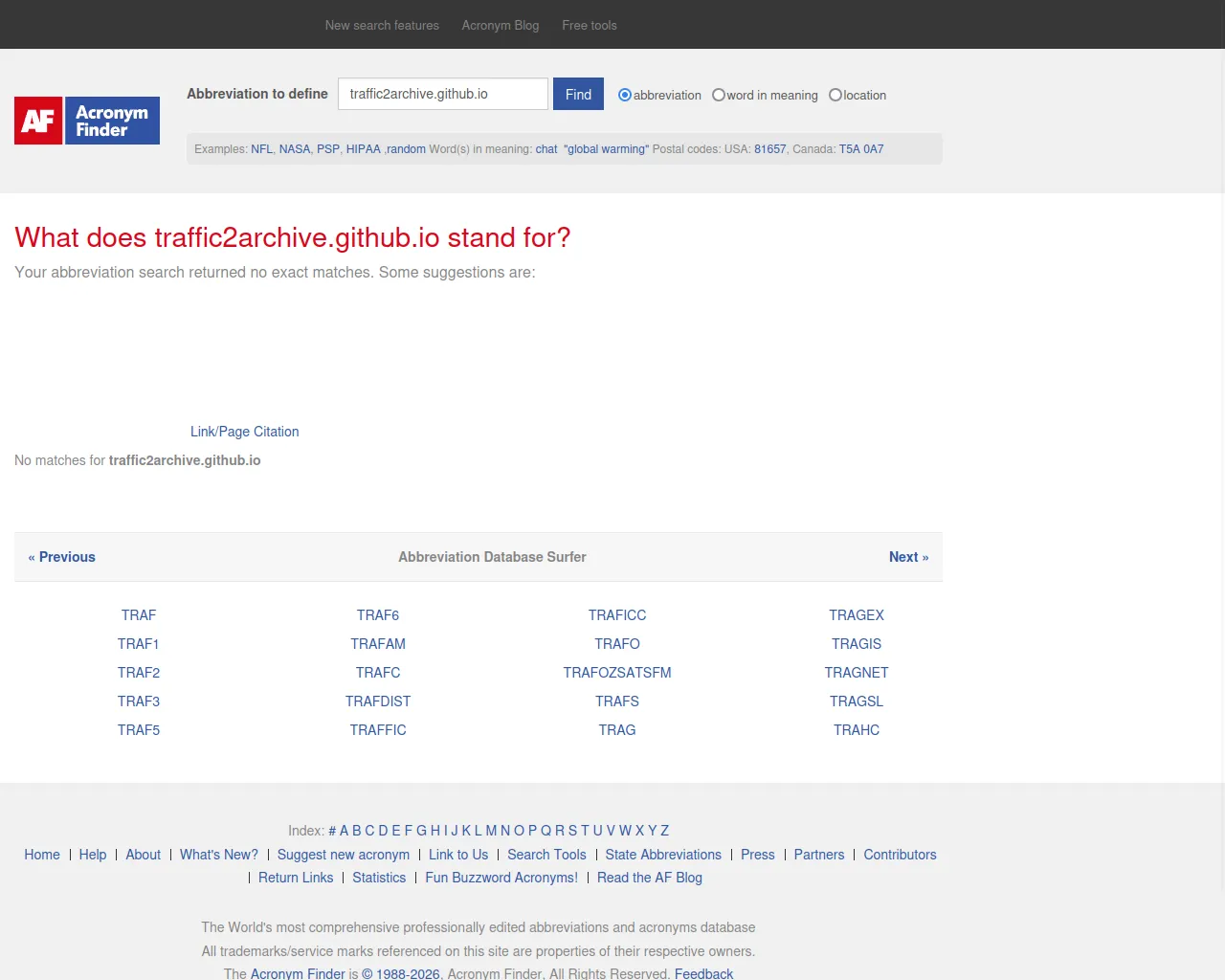 www.acronymfinder.com/~/search/af.aspx?Acronym=traffic2archive.github.io