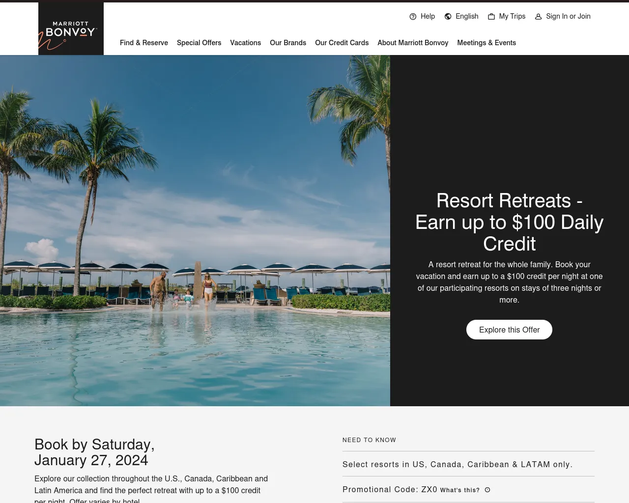 Resort Retreats - Earn up to $100 Daily Credit | Marriott Deals