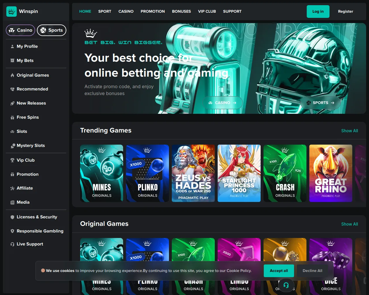 Winspin Casino Games & Sports Betting | Play and Win Online