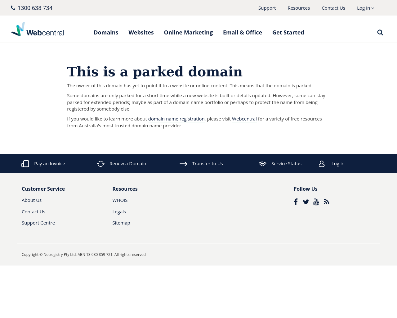 This is a parked domain with Webcentral