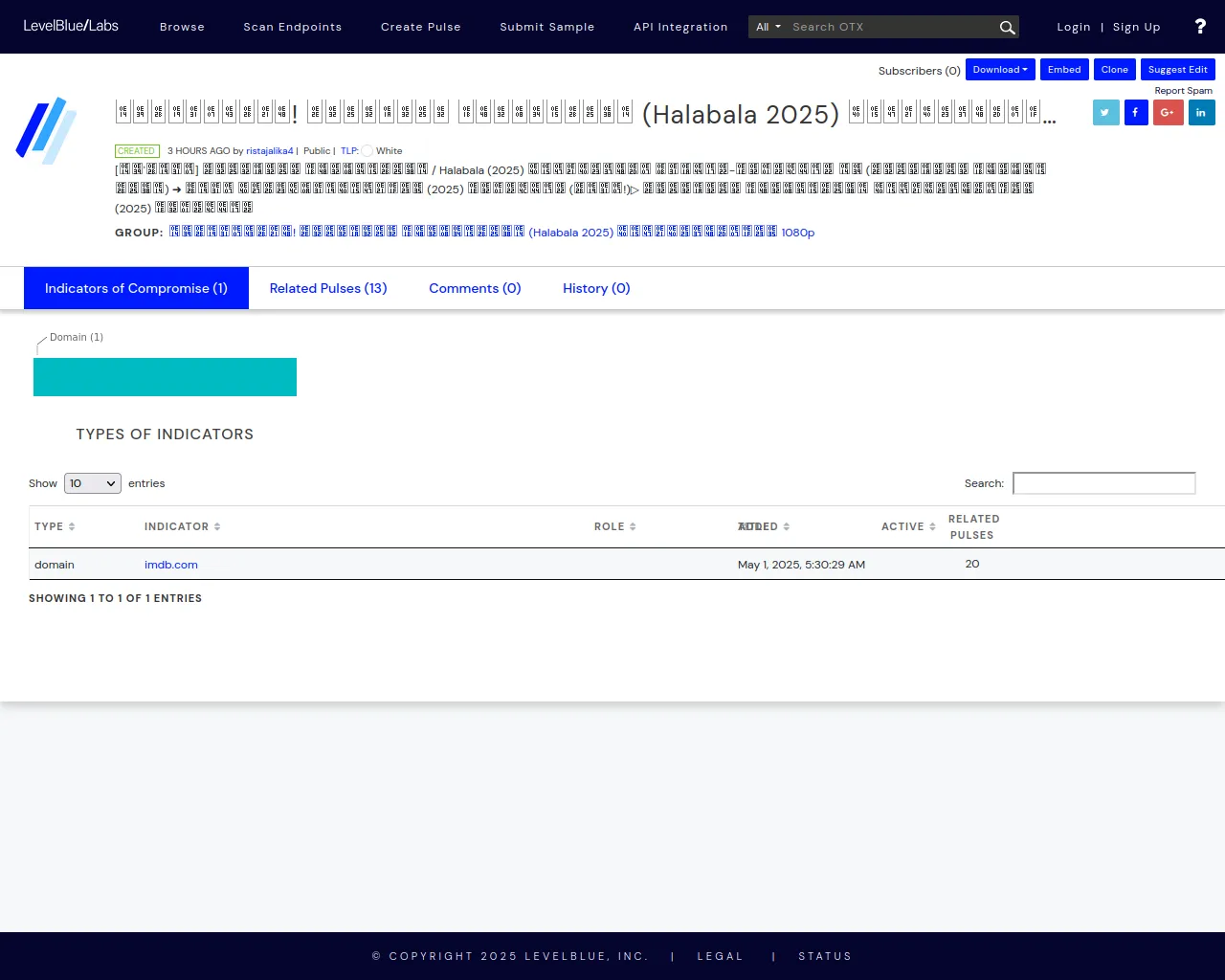 ดูหนังใหม่! ฮาลาบาลา ป่าจิตหลุด (Halabala 2025) เต็มเรื่องฟรี 1080p - LevelBlue - Open Threat Exchange