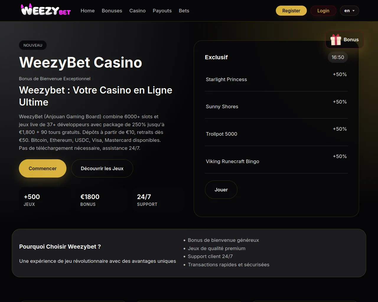 WeezyBet Casino – Bonus pour joueurs français