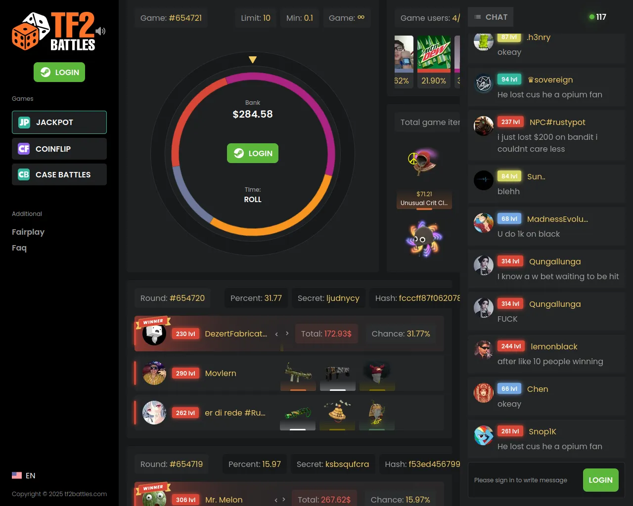 TF2BATTLES | Jackpot | TF2 Roulette Jackpot | TF2BATTLES.COM
