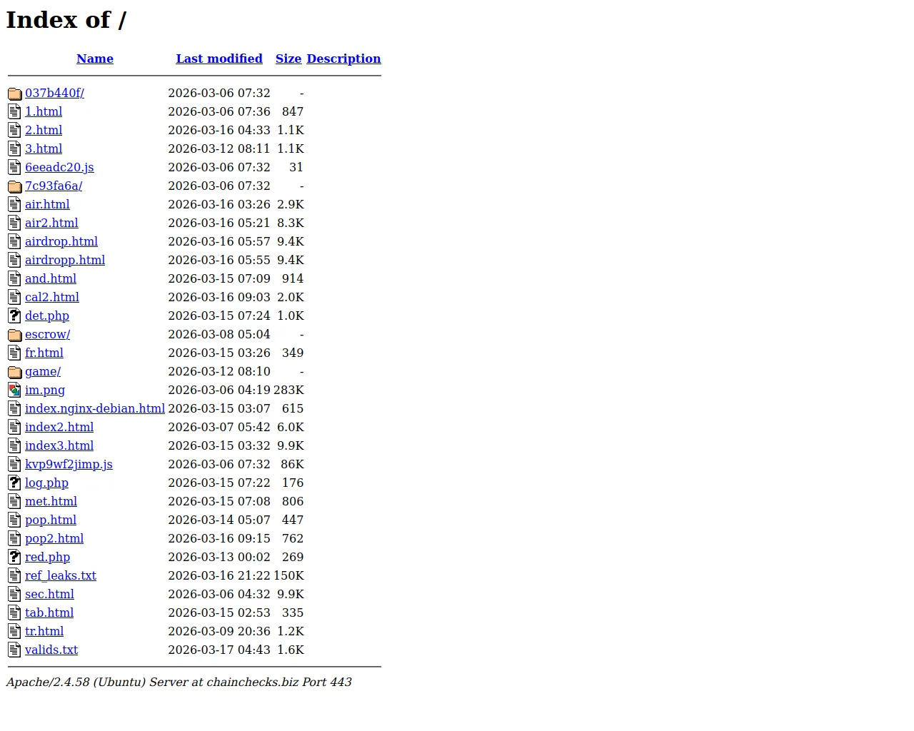 chainchecks.biz 8 alert(s) on this Host | unknown | 2026-03-06 | 2026-03-17 | 2026-03-17 | 3.1 kB | 10 kB | ![]() 158.94.211.78 |