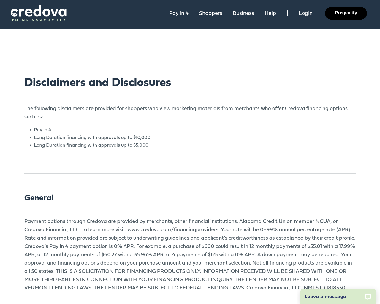 Credova | Disclaimers Disclosures