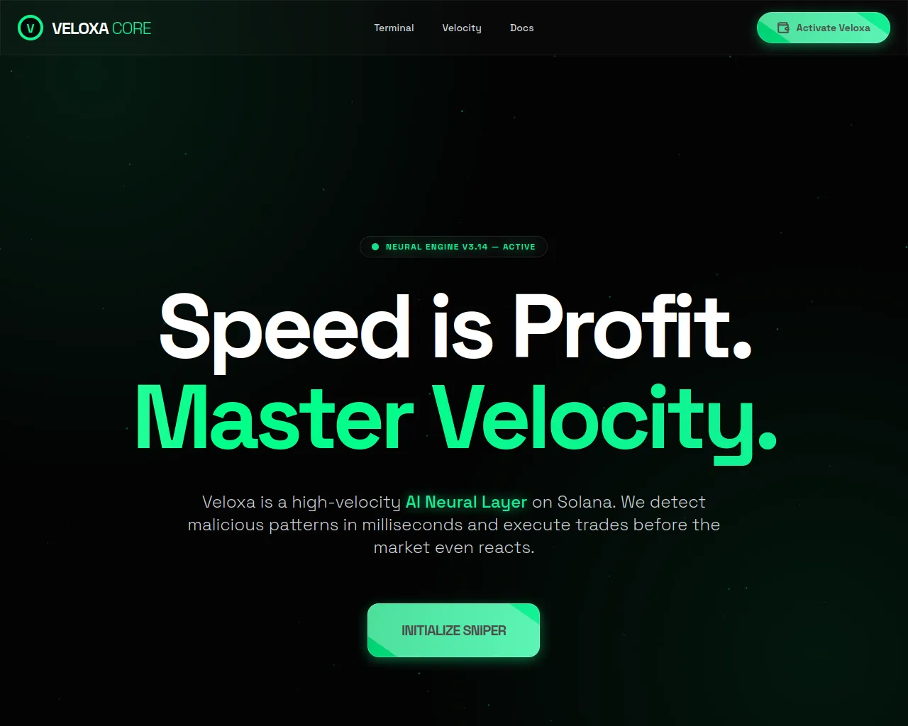 VELOXA | High-Velocity AI Intelligence | Solana Sniper