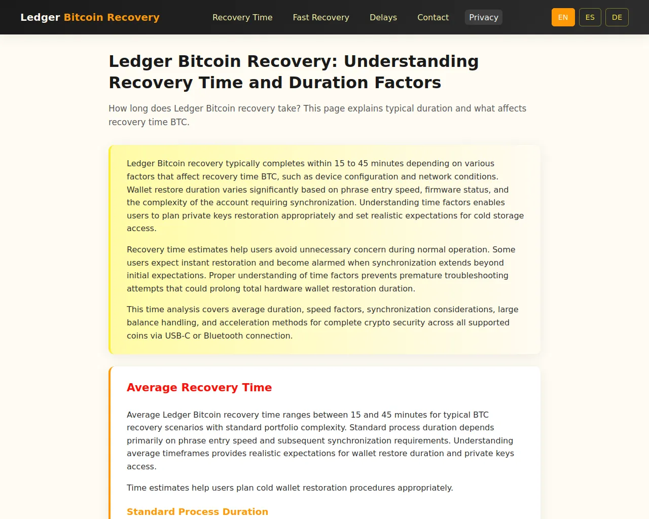 Ledger Bitcoin Recovery | Duration Analysis