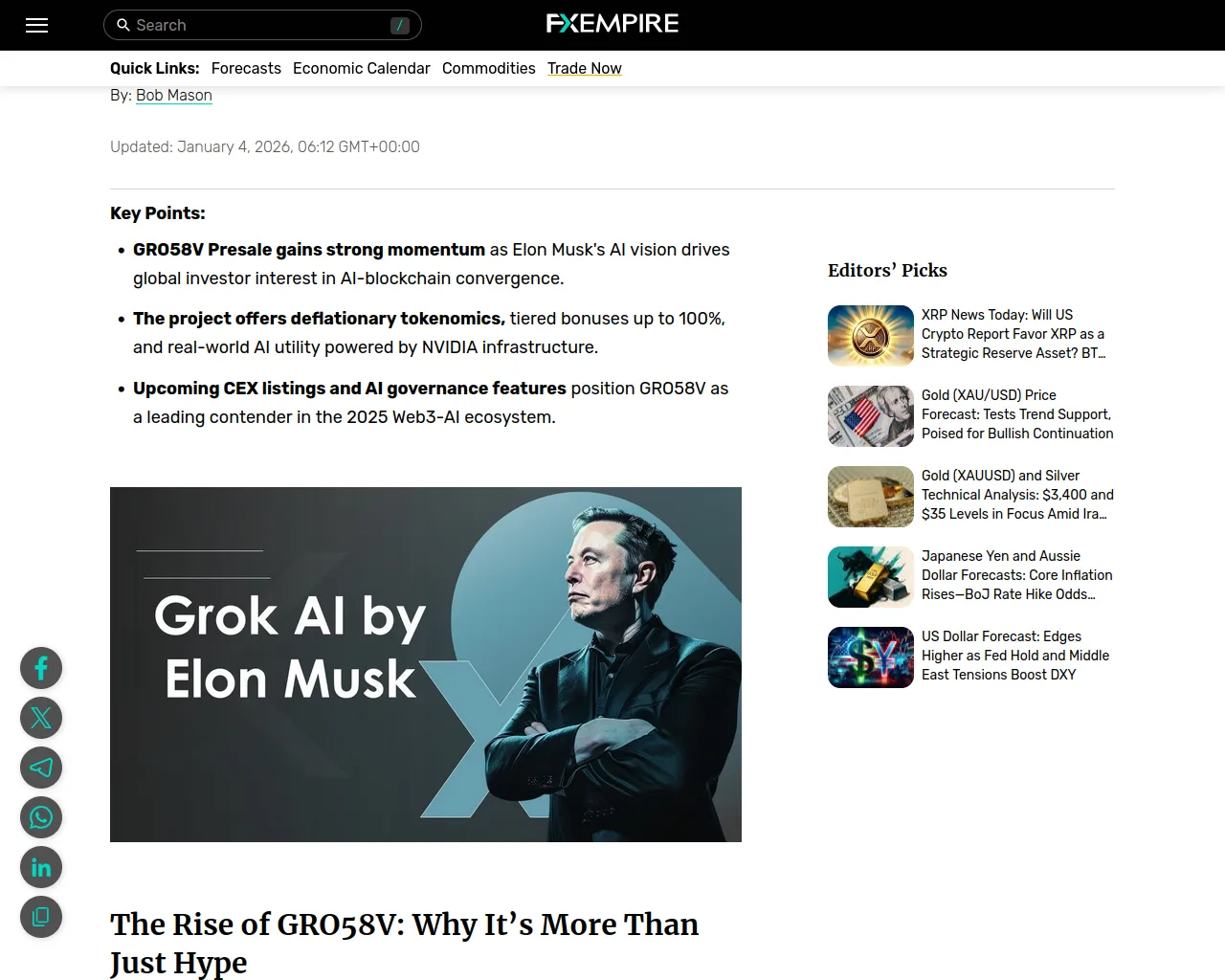 GRO58V Presale: Elon Musk’s AI-Blockchain Vision Captures Global Investor Imagination | FXEmpire