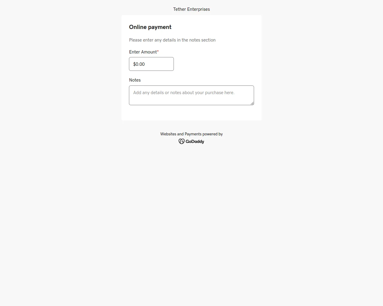 Online payment @ Tether Enterprises