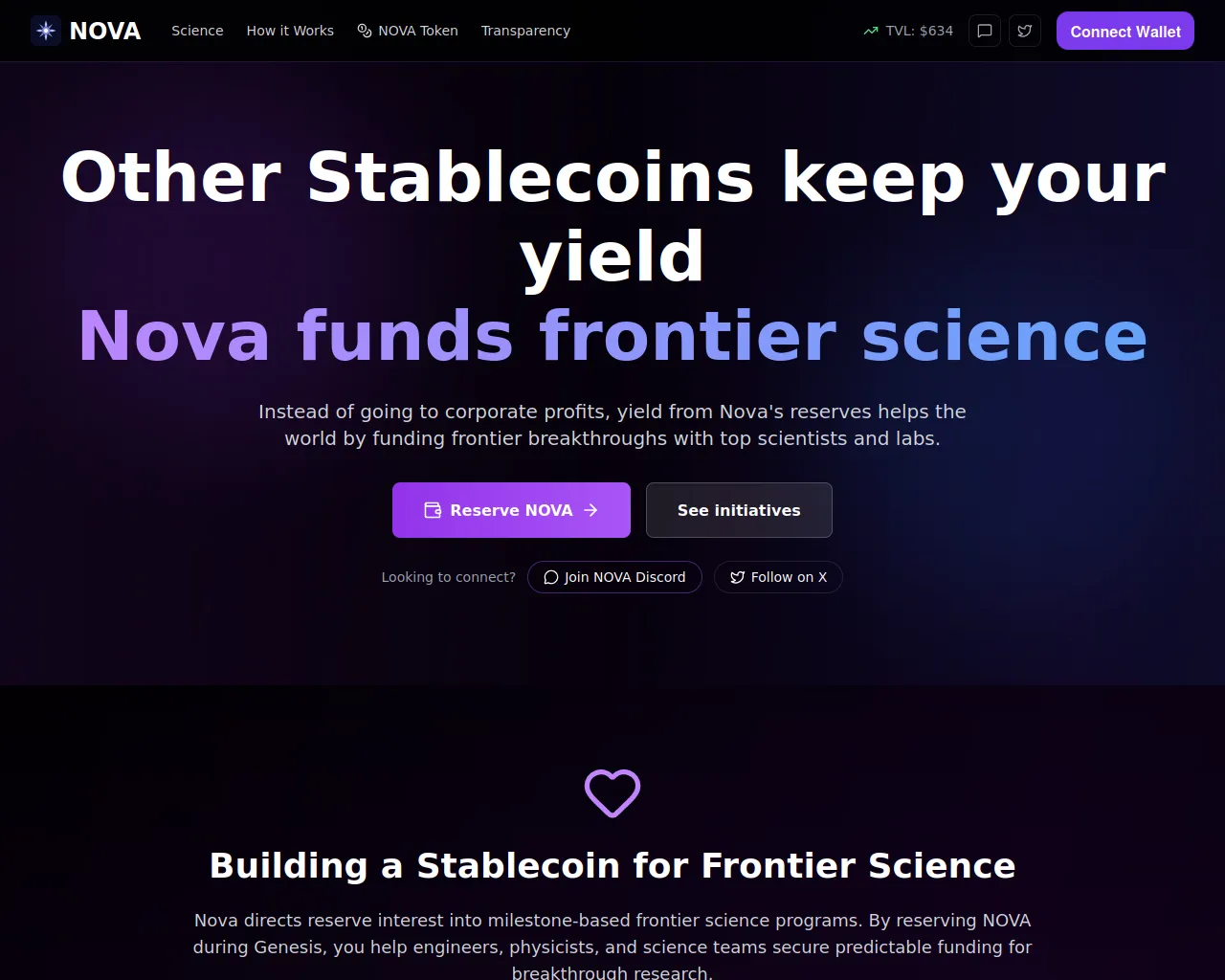 Nova — The stablecoin where yield funds frontier science