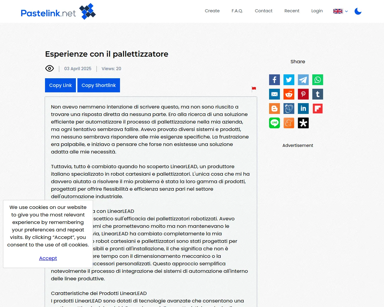 Esperienze con il pallettizzatore - Pastelink.net