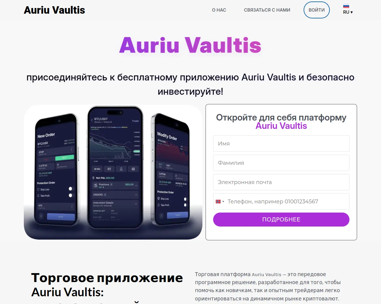 Auriu Vaultis | Официальный сайт & (последняя) высокодоходная торговля криптовалютой