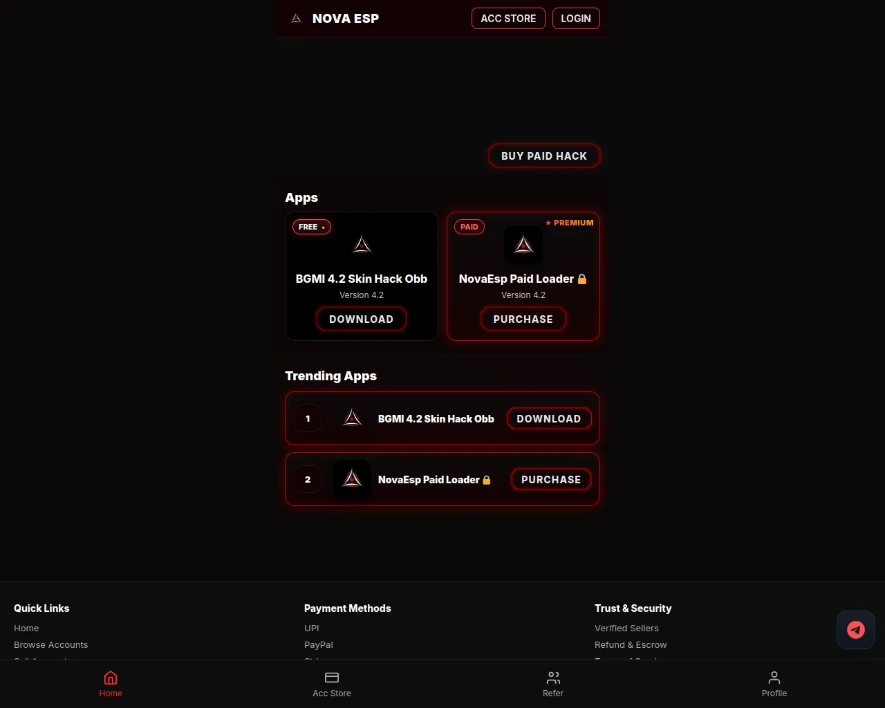 Nova ESP — Buy BGMI IDs & Paid APKs
