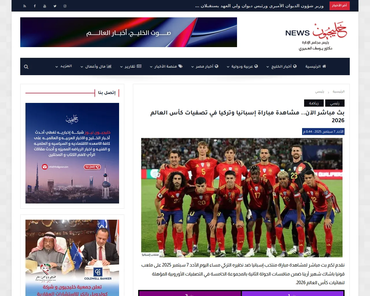 بث مباشر الآن.. مشاهدة مباراة إسبانيا وتركيا في تصفيات كأس العالم 2026 - خليجيون