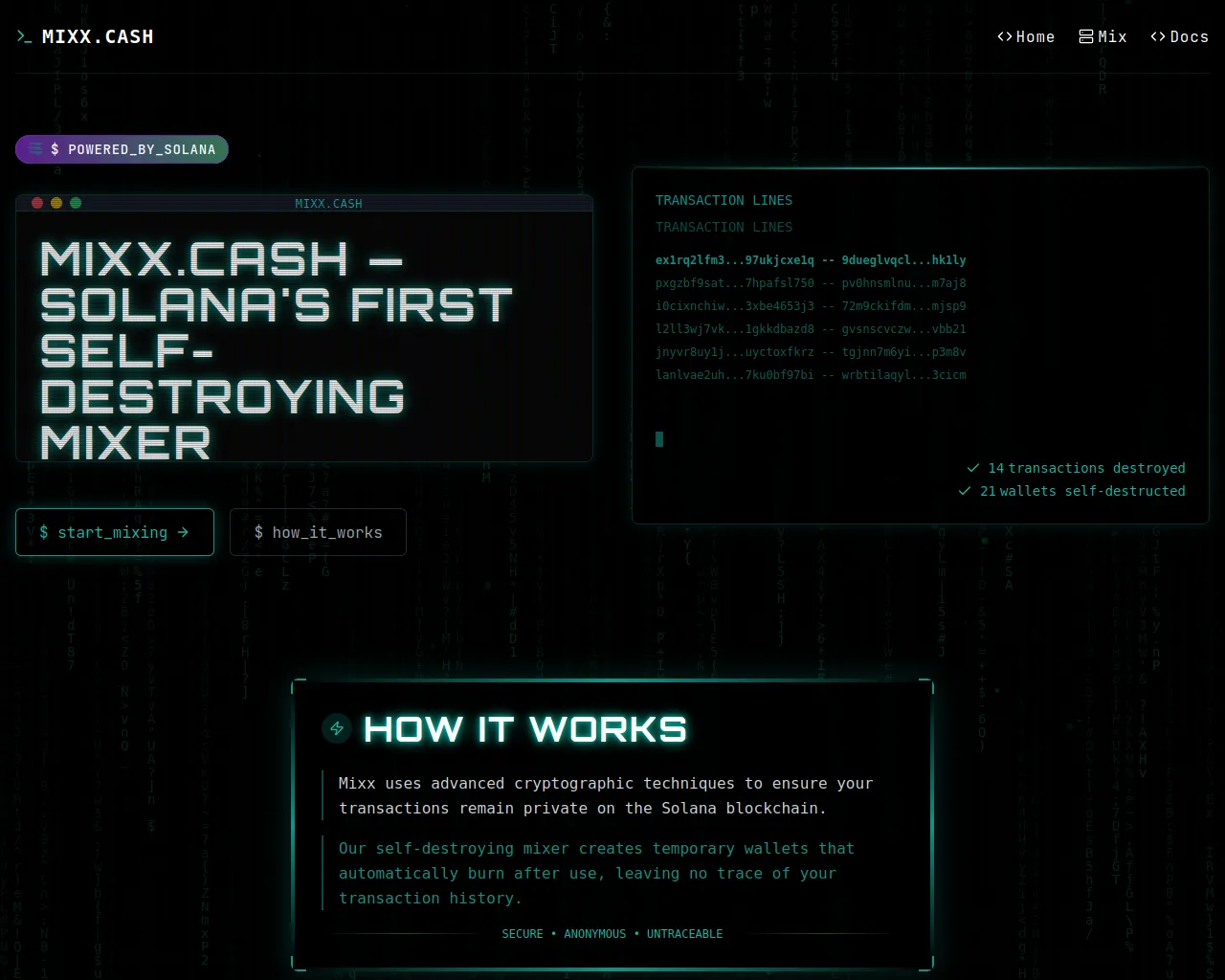Mixx.Cash - Solana's First Self-Destroying Mixer