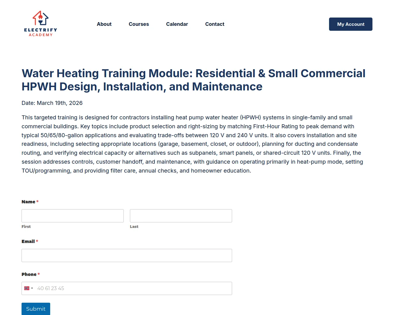 Water Heating Training Module – Residential & Small Commercial HPWH Design, Installation, and Maintenance (3-19-26) - Electrify Academy