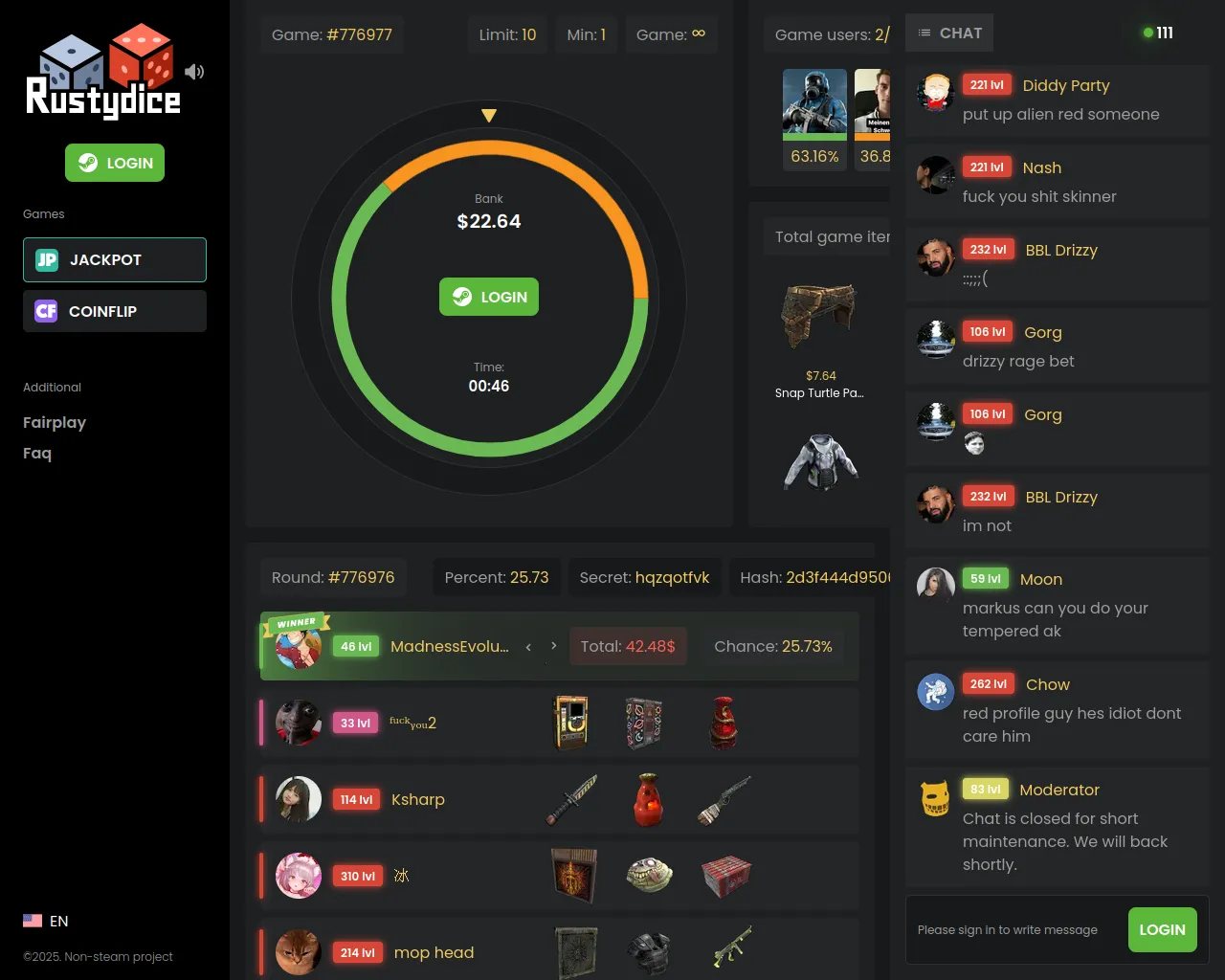 RUSTYDICE | JACKPOT | Rust Roulette Jackpot | RUSTYDICE.COM