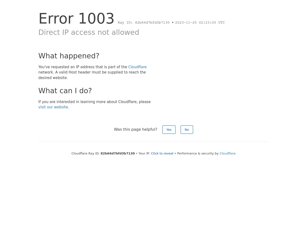 Direct IP access not allowed | Cloudflare