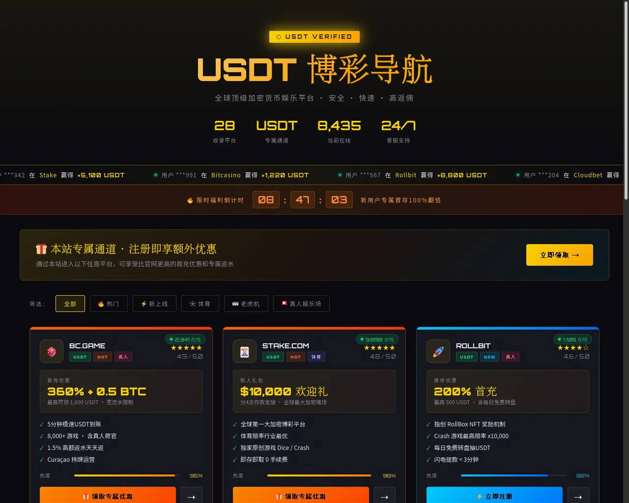 USDT博彩导航 | 顶级加密货币娱乐平台汇总