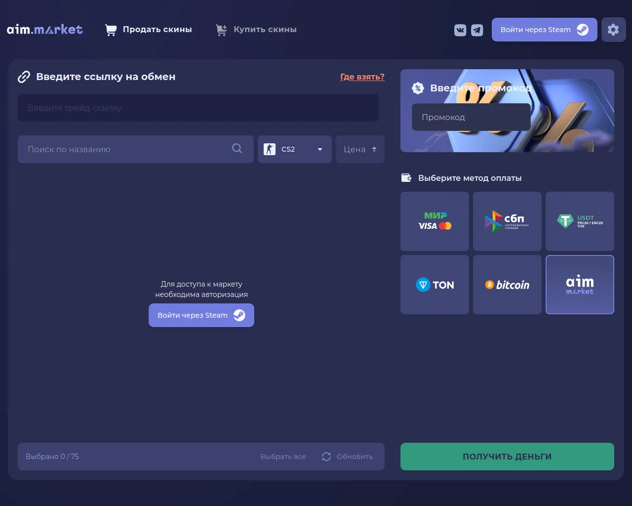 Продать скины КС 2, КС ГО, ДОТА 2, РАСТ мгновенно | Aim.market