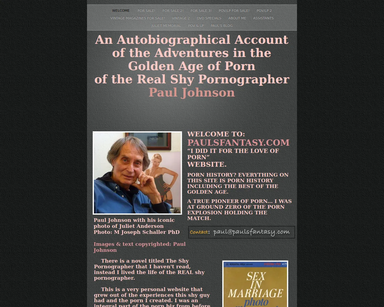welcome to: Paulsfantasy.com “I did it for the love of porn” website. Porn History? Everything on this site is porn history including the best of the Golden Age. A true pioneer of porn... I was at ground zero of the porn explosion holding the match.