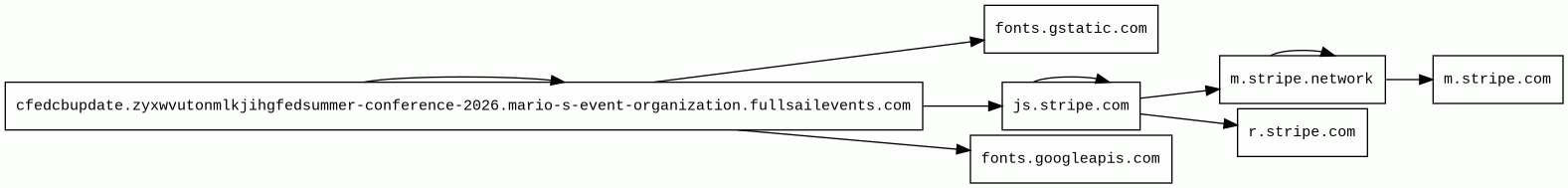 | Quad9 DNS | cfedcbupdate.zyxwvutonmlkjihgfedsummer-conference-2026.mario-s-event-organization.fullsailevents.com | malicious | Sinkholed |