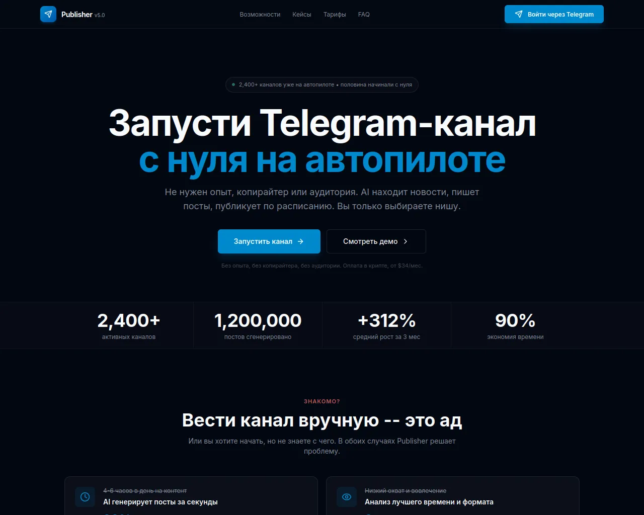 Publisher v5.0 — AI-управление Telegram-каналами