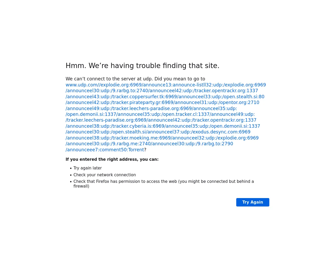 about:neterror?e=dnsNotFound&u=https%3A//udp//explodie.org%3A6969/announce13%3Aannounce-listll32%3Audp%3A/explodie.org%3A6969/announceel30%3Audp%3A/9.rarbg.to%3A2740/announceel42%3Audp%3A/tracker.opentrackr.org%3A1337/announceel43%3Audp%3A/tracker.coppersurfer.tk%3A6969/announceel33%3Audp%3A/open.stealth.si%3A80/announceel42%3Audp%3A/tracker.pirateparty.gr%3A6969/announceel31%3Audp%3A/opentor.org%3A2710/announceel49%3Audp%3A/tracker.leechers-paradise.org%3A6969/announceel35%3Audp%3A/open.demonii.si%3A1337/announceel35%3Audp%3A/open.tracker.cl%3A1337/announceel49%3Audp%3A/tracker.leechers-paradise.org%3A6969/announceel42%3Audp%3A/tracker.opentrackr.org%3A1337/announceel38%3Audp%3A/tracker.cyberia.is%3A6969/announceel35%3Audp%3A/open.demonii.si%3A1337/announceel30%3Audp%3A/open.stealth.si/announceel37%3Audp%3A/exodus.desync.com%3A6969/announceel38%3Audp%3A/tracker.moeking.me%3A6969/announceel32%3Audp%3A/explodie.org%3A6969/announceel30%3Audp%3A/9.rarbg.me%3A2740/announceel30%3Audp%3A/9.rarbg.to%3A2790/announceee7%3Acomment50%3ATorrent&c=UTF-8&d=We%20can%E2%80%99t%20connect%20to%20the%20server%20at%20udp.