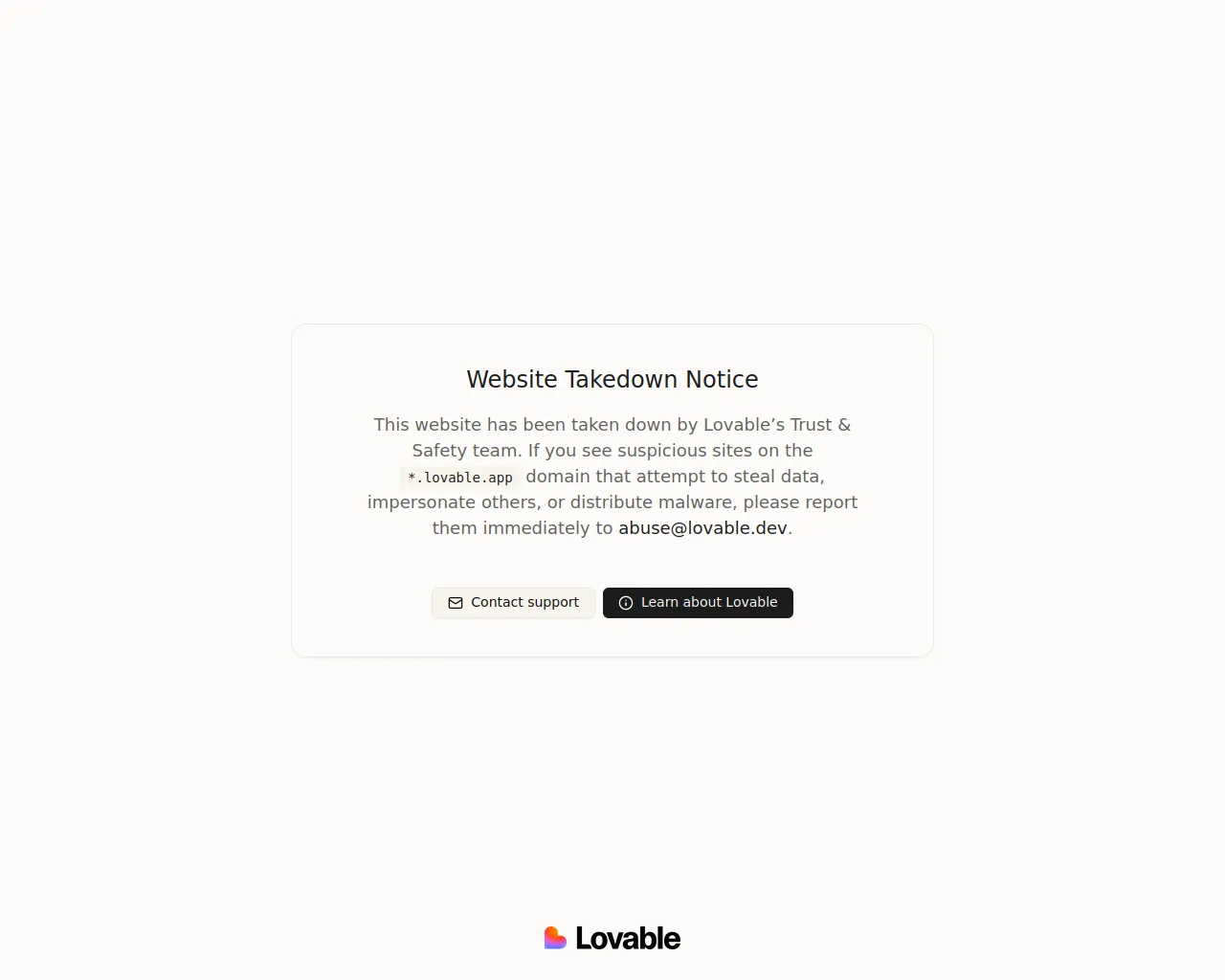 Website Takedown Notice - Lovable Trust & Safety