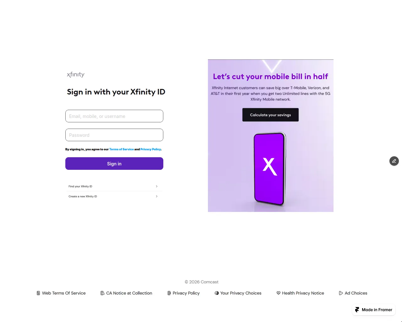 Sign in to Xfinity
