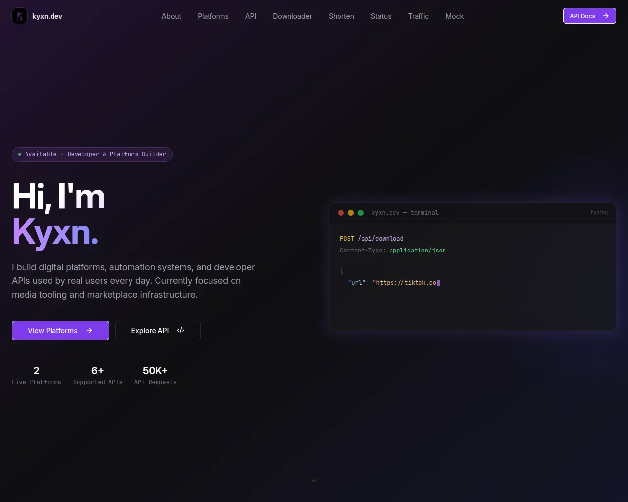 Kyxn Dev — Developer Platforms & APIs