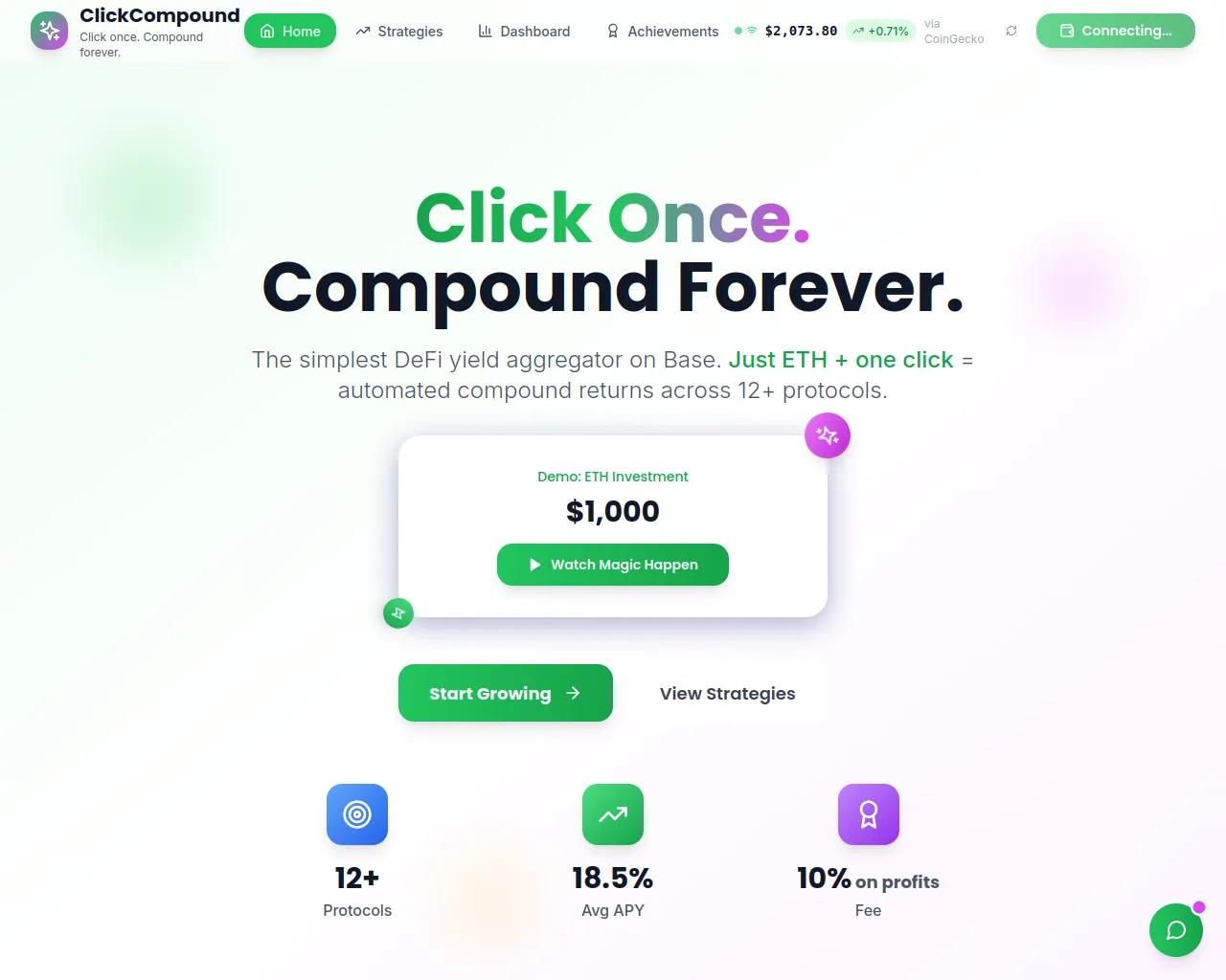 ClickCompound - DeFi Yield Aggregator on Base | Click once. Compound forever.