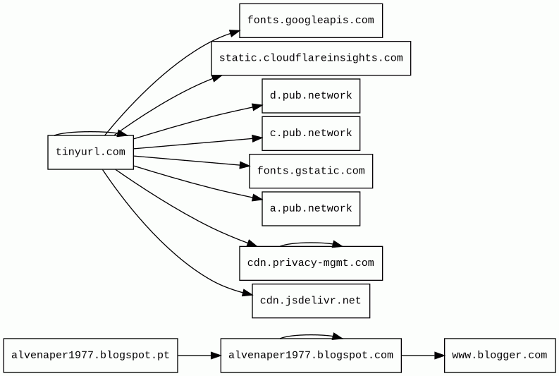 alvenaper1977.blogspot.pt 1 alert(s) on this Host | unknown | unknown | No data | No data | 494 B | 12 kB | ![]() 172.217.19.225 | |