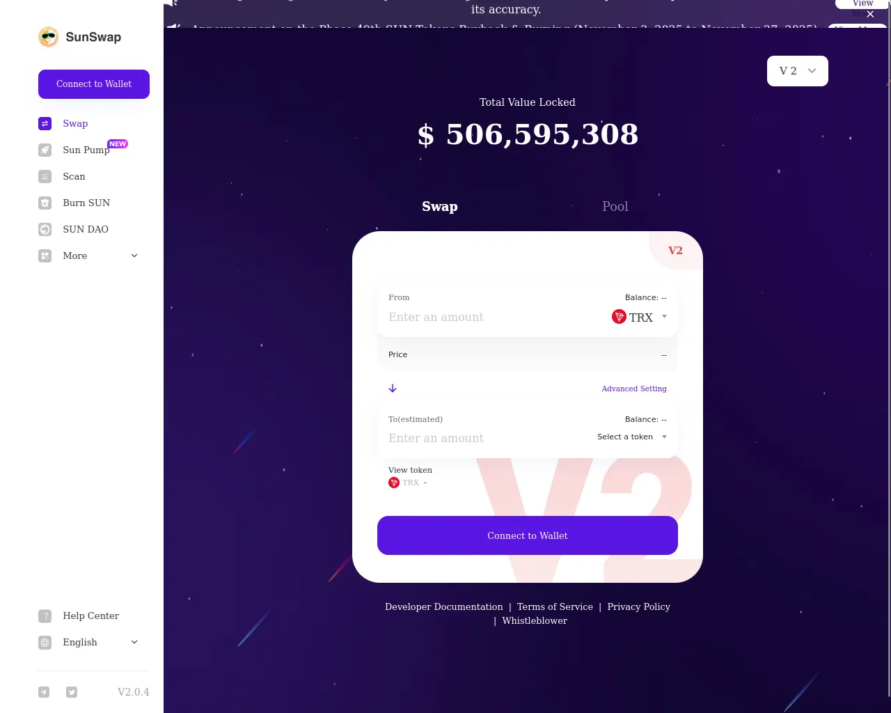 SunSwap | A decentralized exchange protocol for automated liquidity provision on TRON