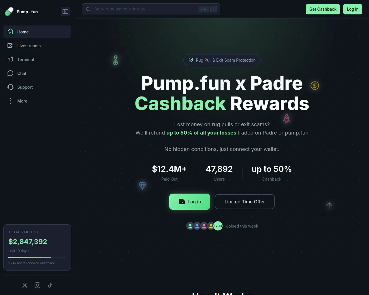 Pump.fun Cashback - Get % Back on Your Losses