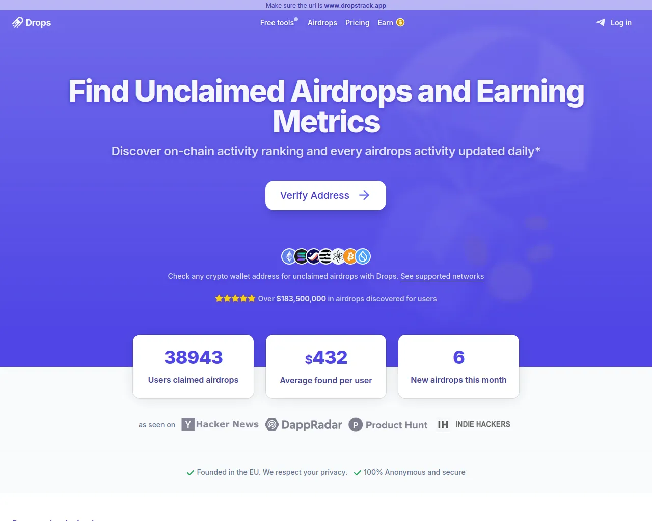 Check any wallet address for unclaimed airdrops! | Drops