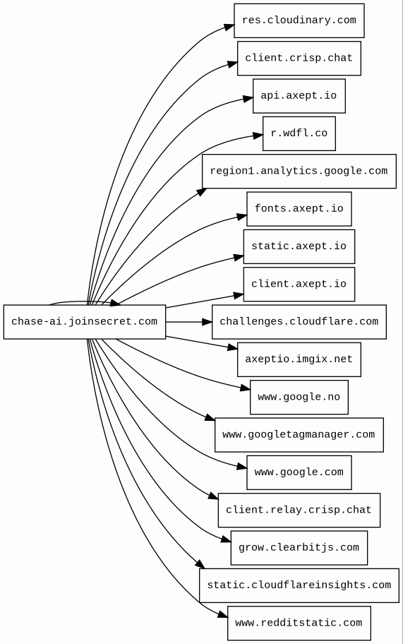 chase-ai.joinsecret.com | unknown | 2019-06-03 | 2026-03-24 | 2026-03-24 | 37 kB | 1.0 MB | ![]() 172.66.40.252 | ![]() |