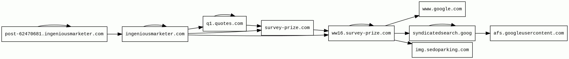 post-62470681.ingeniousmarketer.com 9 alert(s) on this Host | unknown | 2023-07-03 | 2025-10-08 | 2025-10-08 | 1.3 kB | 902 B | ![]() 173.239.8.164 |