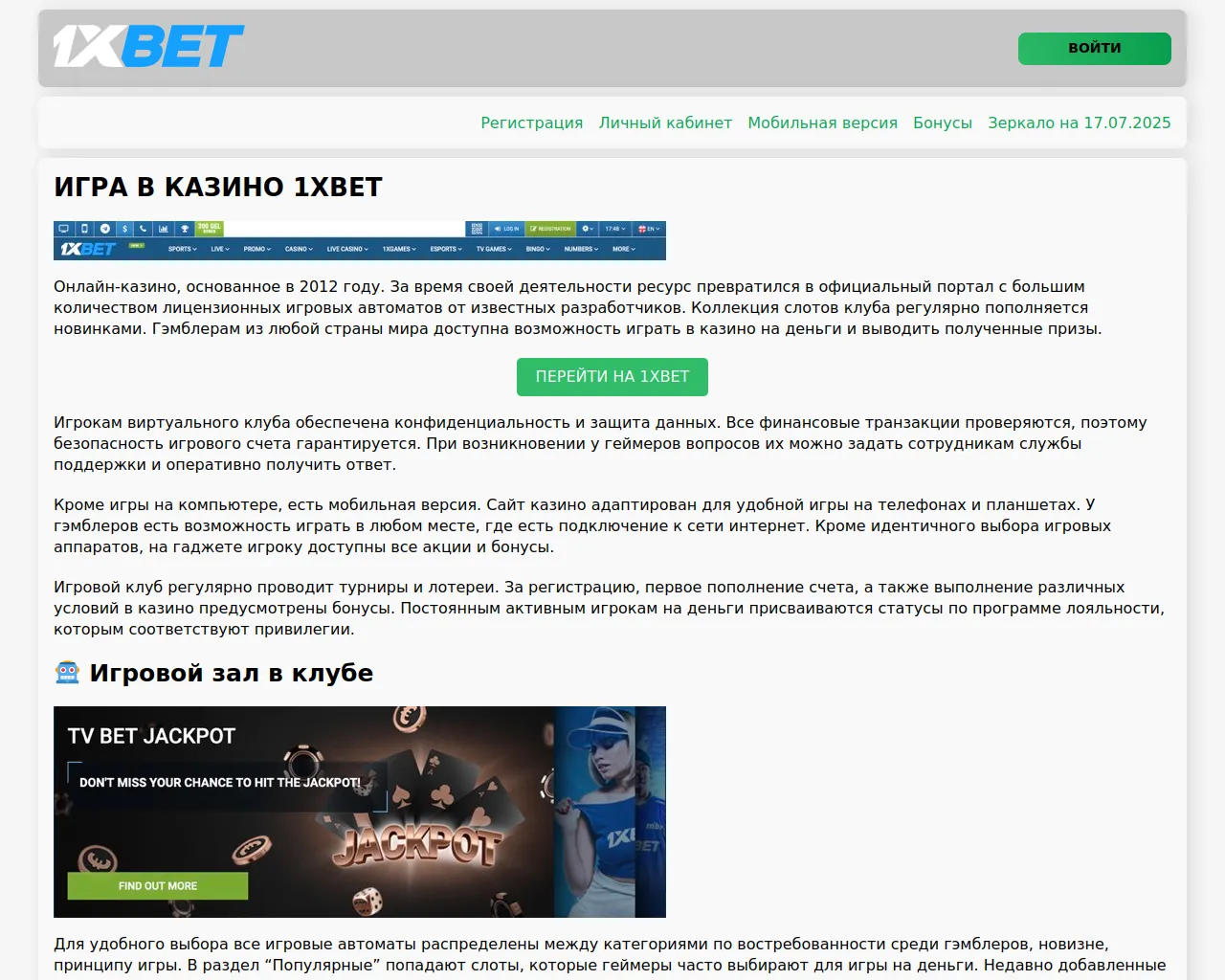 Онлайн-казино 1xBet - лицензированный игровой клуб 🎲 с лучшими слотами