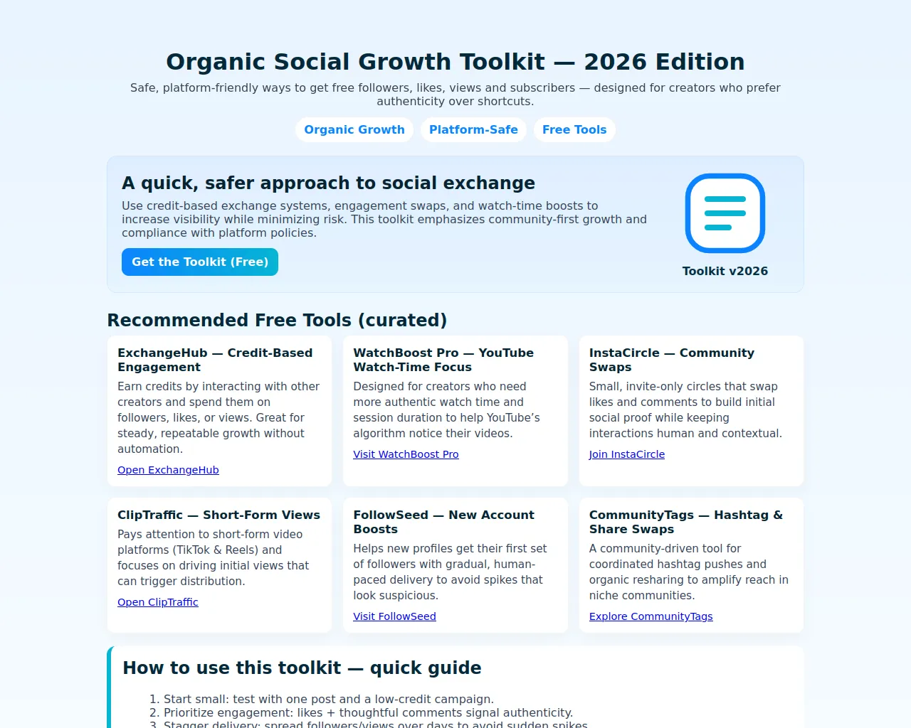 Organic Social Growth Toolkit 2026 — Safe Free Likes & Followers