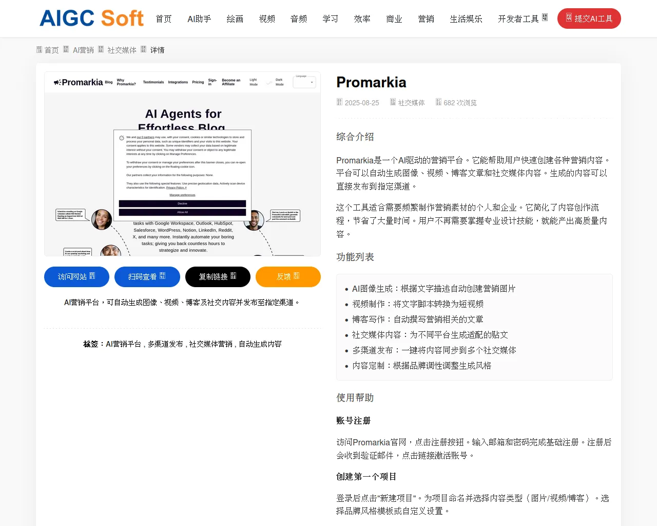 Promarkia-AI智能营销内容生成平台,一键创建图片视频博客