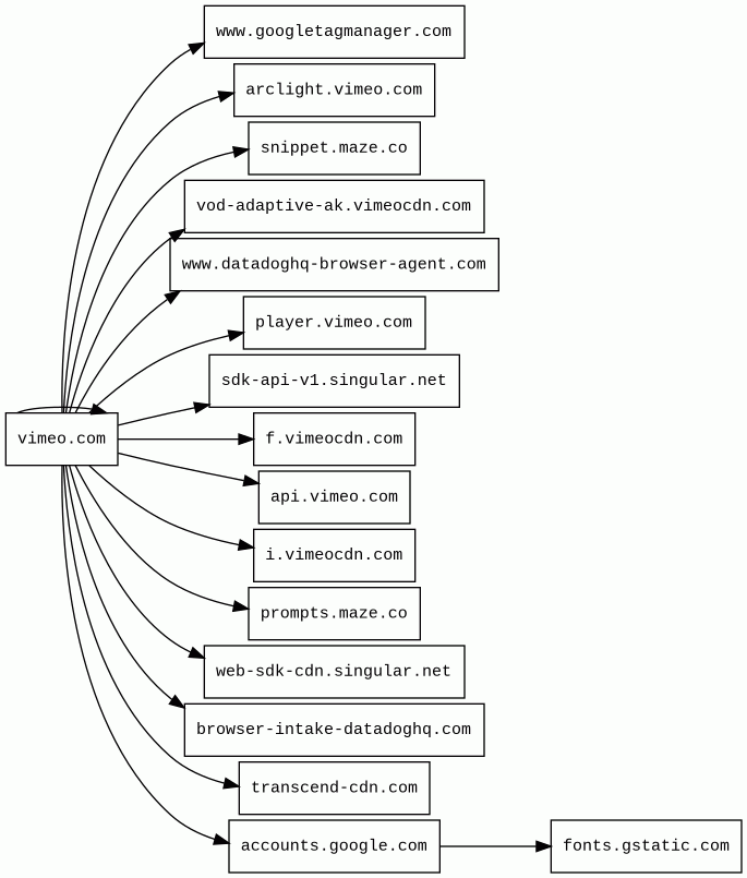 vimeo.com | 78 | 2004-12-15 | 2012-05-20 | 2026-02-25 | 3.2 kB | 326 kB | ![]() 162.159.138.60 | |