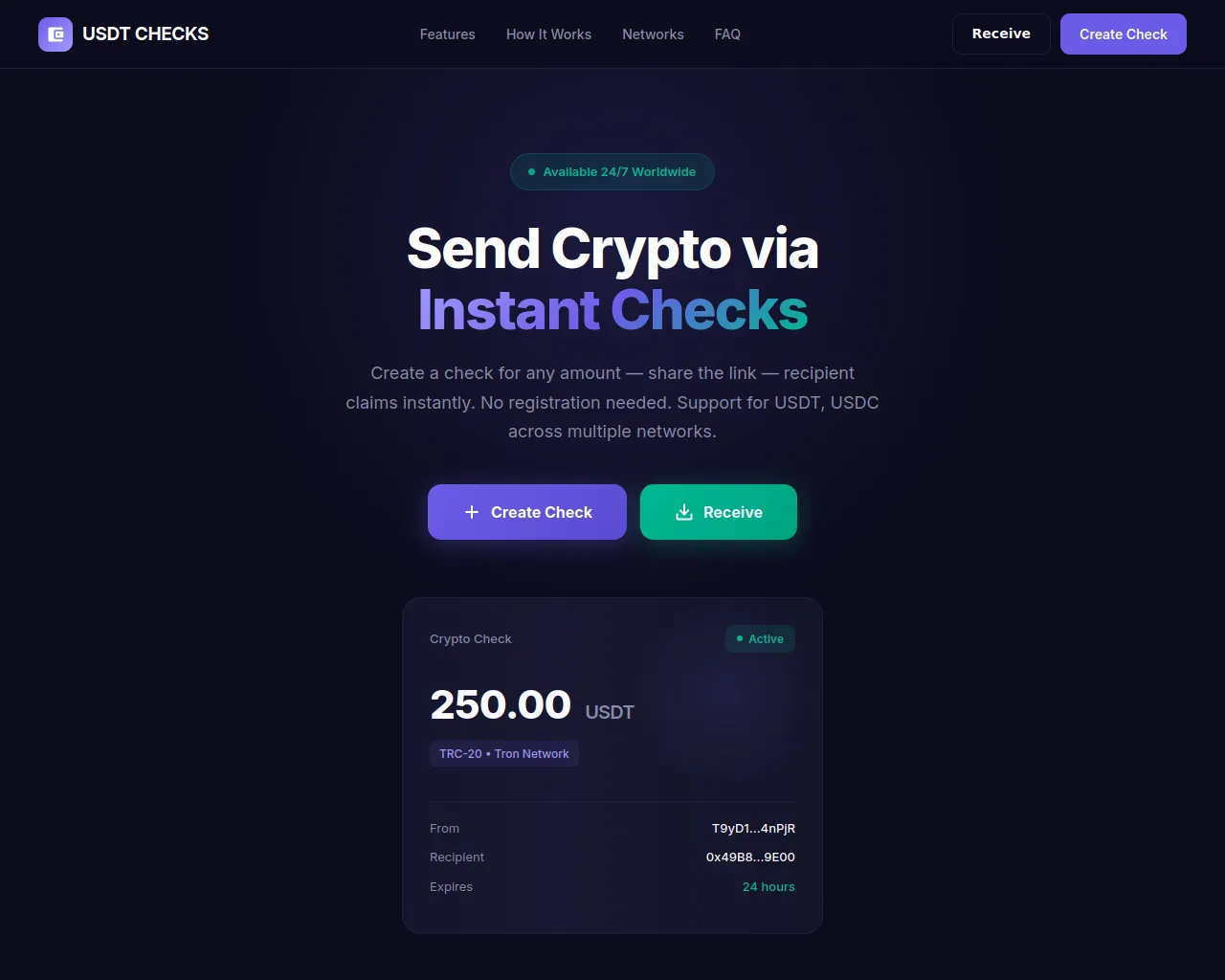 USDT CHECKS — Send & Receive Crypto Instantly