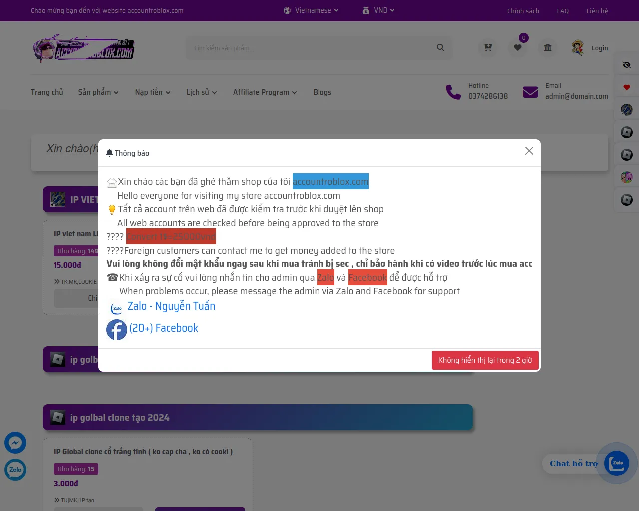 Hệ thống bán account roblox giá rẻ , đem đến những trải nghiệm tốt nhất cho khách hàng. Cảm ơn bạn đã ghé thăm shop.