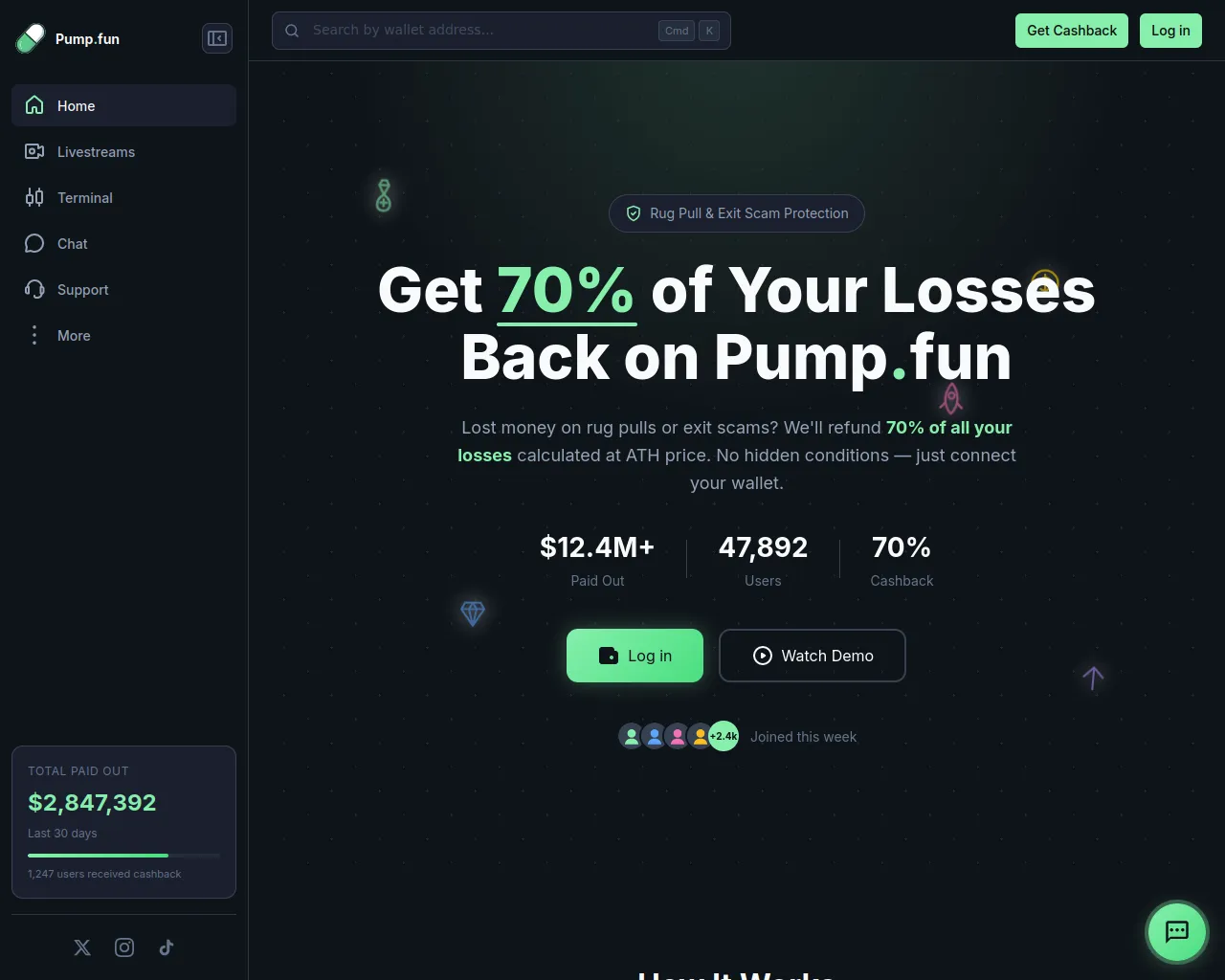 Pump.fun Cashback | Get 70% Back on Rug Pull Losses