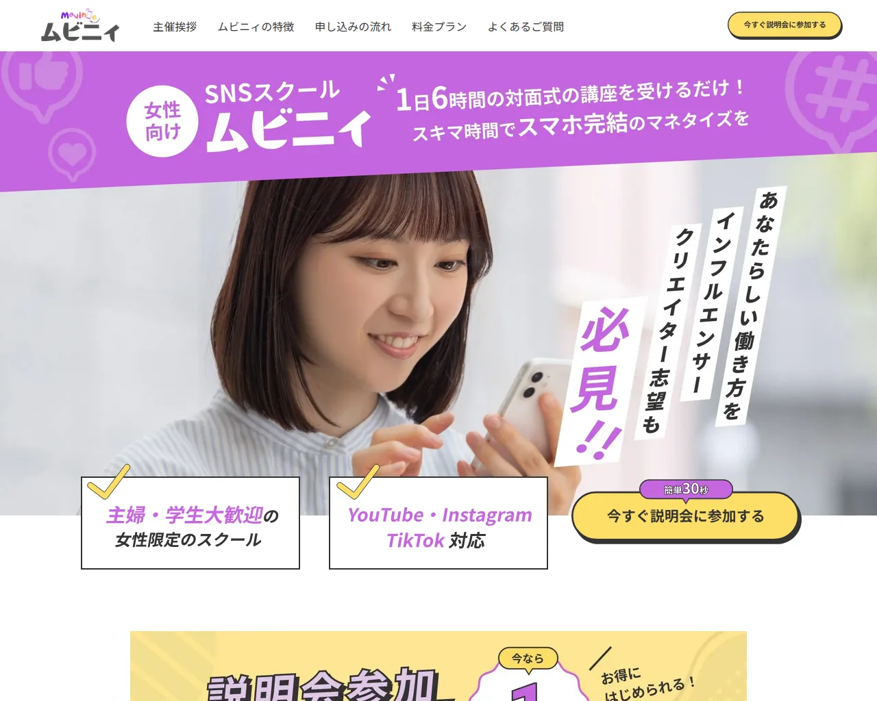 スマホ完結!女性限定のSNSスクール「ムビニィ」 - ムビニィ