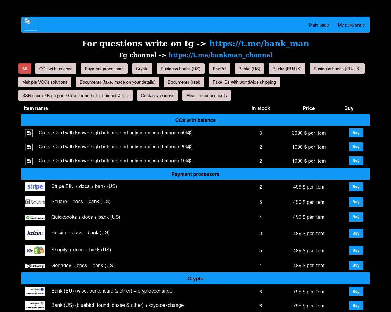Bankman - banks, merchants, crypto, paypal, docs & more!