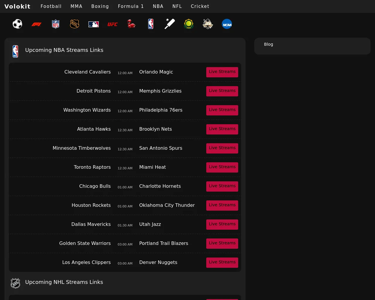 Volokit - Watch NFL NHL NBA MMA MLB F1 Boxing Streams