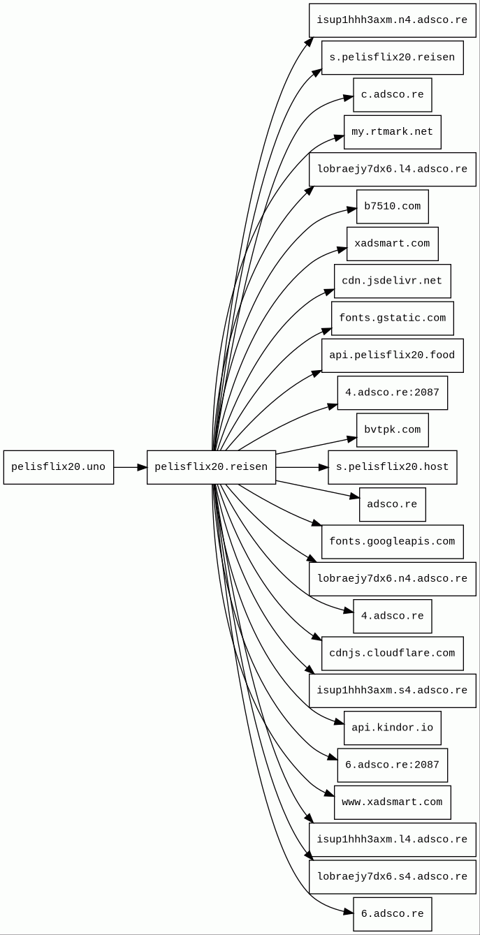 api.pelisflix20.food 1 alert(s) on this Host | unknown | 2025-11-25 | 2025-11-27 | 2026-03-19 | 514 B | 685 B | ![]() 188.114.96.1 | |